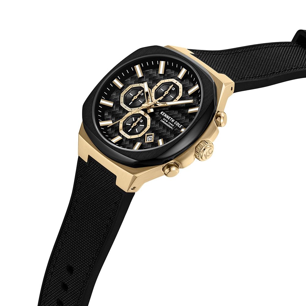 - Modern Design - Classic Appeal - Chronograph Style – This Kenneth Cole New York watch blends modernity with classic appeal, featuring a distinctive chronograph dial and cut top ring for a sleek and timeless look.